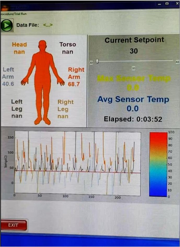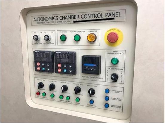 Since its invention, multiple chambers throughout the country have been built and installed in Medical Schools and Hospitals. Our TST chambers are a time-proven method that retains perspiration as it is created. This is achieved by precisely controlling temperature and humidity within 1 setpoint. The TST chamber uses two options for thermoregulatory sweat. First is heat and humidity. Second is humidity and infrared heat to generate perspiration. Infrared utilizes 5 optimally placed infrared lamps that are controlled by six skin sensors that monitor and display in real-time the temperature of the legs, arms, torso, and head. The combined temperatures are used to accurately control the infrared lamps precisely to 1-degree Centigrade, preventing overshooting and skin injury.